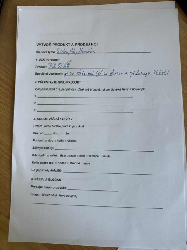 Dne 5.listopadu nás ve 4. a 5. ročníku v rámci bezplatného programu „Den pro školu“ navštívil pan Jan Barbořík, který se zabývá marketingem a grafikou. Dětem řekl svůj životní příběh, jak se ke své profesi dostal a co jeho práce obnáší. Dále si pro děti nachystal praktickou část, kde si ve skupinkách zkusily vytvořit marketingovou strategii ke konkrétnímu výrobku. Děti byly z programu nadšené a bavila je spolupráce se spolužáky na zadaném úkolu.