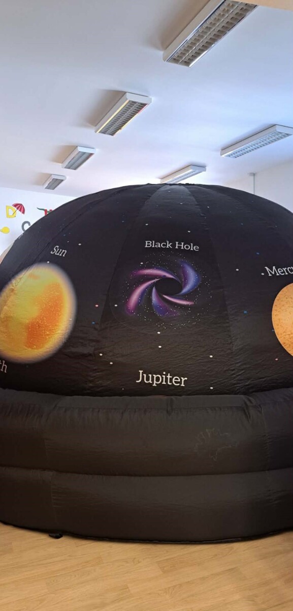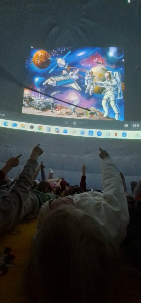 Ve středu 22. dubna se naše školka proměnila v opravdové vesmírné centrum. Navštívil nás totiž Kosmický stan – mobilní planetárium, které dětem otevřelo bránu do nekonečného vesmíru přímo v prostorách naší herny. Děti měly jedinečnou možnost si zblízka představit, jak to vlastně „tam nahoře“ vypadá. Celé dopoledne se neslo v duchu objevování a hravého učení. Čekal na nás bohatý program: